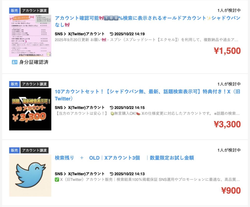 | Xアカウントの出品数 | 約25,000件 | 約28,000件 |