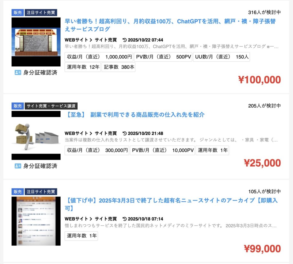 M&Aサイトメインのサイト販売は、まだまだ閑散としています。