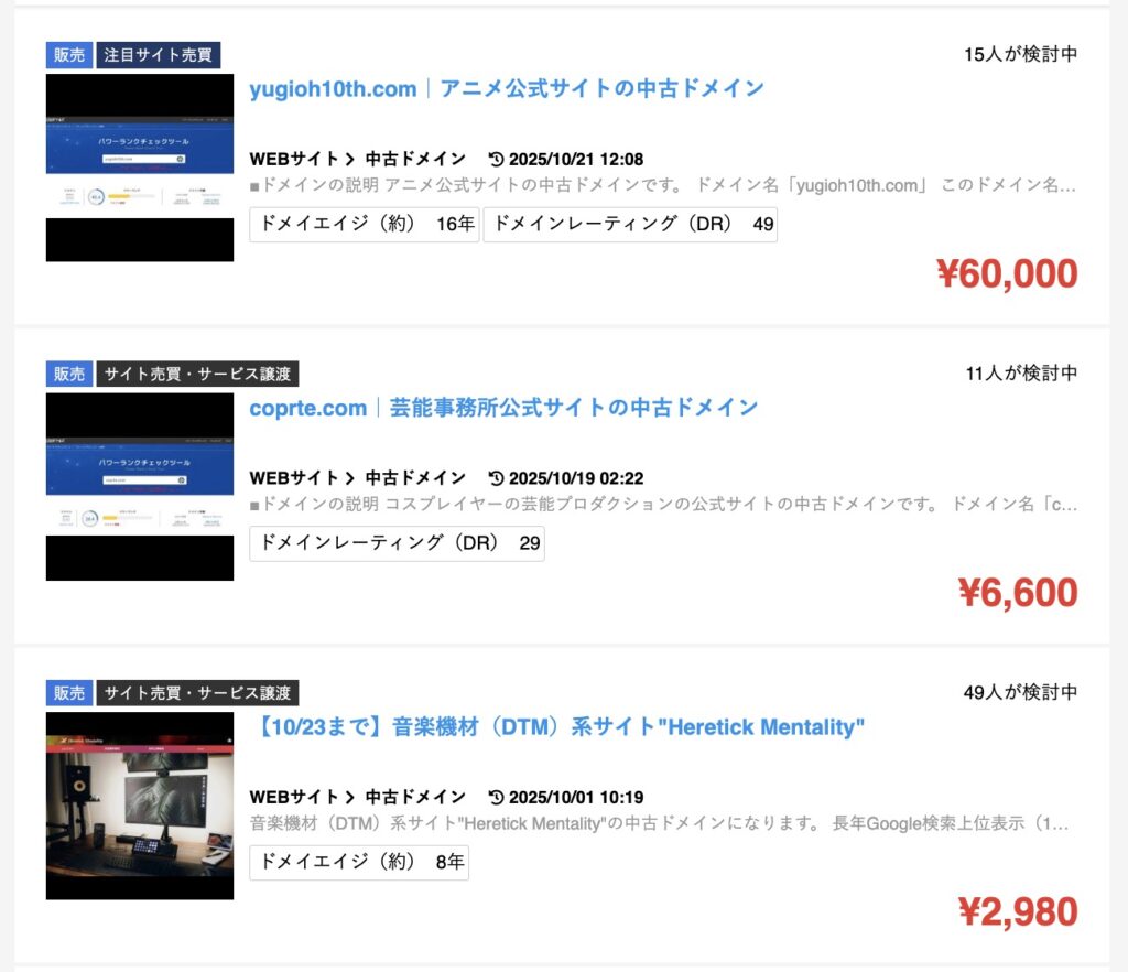 | 中古ドメインの出品数 | 0件 | 20件 |