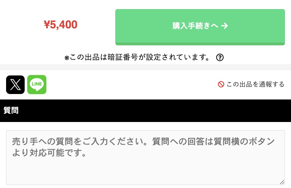 暗証番号付きの商品を買いたいときは、売り手にコメントするだけでOKです。