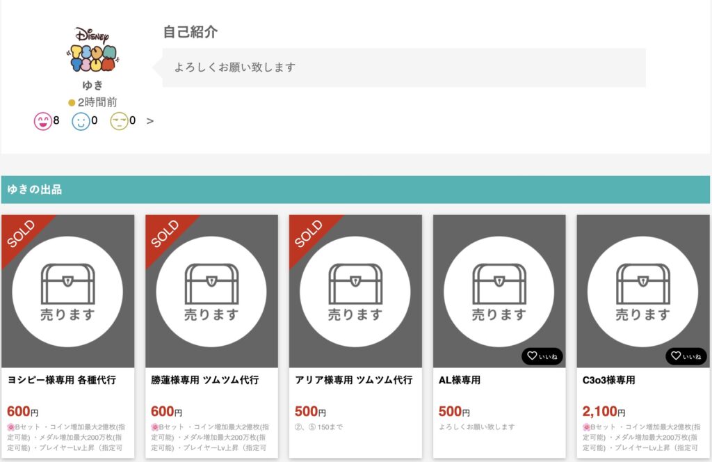 - ぷにぷに、にゃんこ大戦争、ツムツムの出品