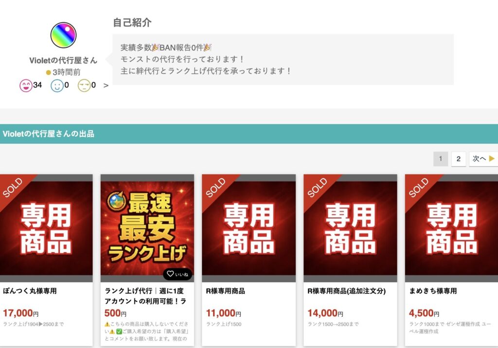 レベル上げ代行は不正な手段が使われた出品もあります。